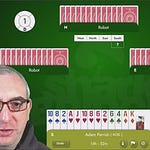 BBO offers a free 8-board duplicate every week, starting on Fridays and ending on Thursday night. Everyone plays the same hands, so you can play any time during the week and then watch my video.
